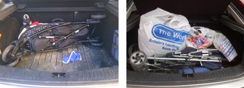 We went to Middlesbrough again for hospital appointment. This time we nipped into town to do a little bit of shopping (primark) my cousin took us into the centre, (as I'm a whimp and won't drive in places I don't know) she only has a small car and I was slightly worried the pushchair wouldn't fit as it only just fits length ways in my focus. Unfortunately we had to take the parcel shelf out, but it still fitted. I was very impressed. As her car is a Clio, and we even managed to fit the bags next to it.