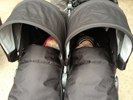 This pram looks really comfy and I am sure that it is. More often than not the twins fall asleep while we're out and about. There is lots of space around them so they can have a little wiggle while relaxing! The cozy toes are really warm and nicely padded, I wish I was small enough to get in there and snuggle with them!