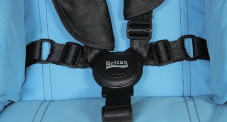 Each side of the five point harness attaches to the hub independently - handy when you are trying to contain a wriggler! With the 2011 model they have also lengthened the harness by 10cm to give more space for growth, plus you can request extenders directly from Britax to give a further 15cm if needed.