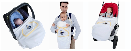 BundleBean Solar complete with removable hooded beach wrap.