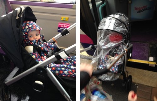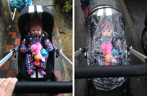 Today on the way to school pick up the heavens opened. Doesn't it always? It was ok for Polly though as I'd brought the raincover with us as it seems quite usual these days for the bright blue skies to darken over and for floods to follow, usually at 2.55pm. Within seconds Polly was tucked up nicely in her rainproof pod and was the only one of us to keep dry.