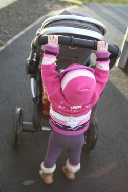 Faye is a real copycat at the moment and if the handle of the jogger is at it's lowest she can just reach to push it herself, which makes her very happy.