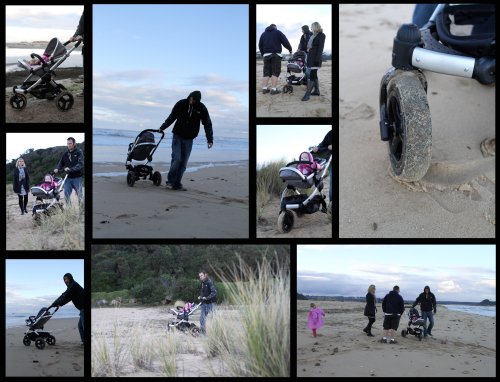 On Saturday we went to the beach. The jogger coped reasonably well on the compact sand but we found it easier to pull it backwards on the softer sand at the top of the beach.