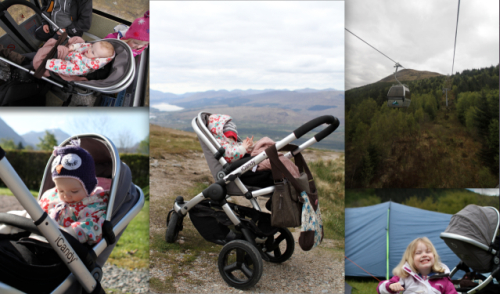 This was in Fort William in May. We went camping for a couple of days and while some of the rest of our party climbed Ben Nevis, we took the Peach Jogger in the Gondala up Aonach Mor, the eighth highest mountain in Britain. In situations like this the extendable handle is fab. I'm always surprised were the Peach Jogger will fit when the handle isn't extended. The jogger was also fantastic for nipping around on the rough ground at the campsite, and when we popped in to town it became the talk of FatFace after being "buggy spotted" by a MALE member of staff!