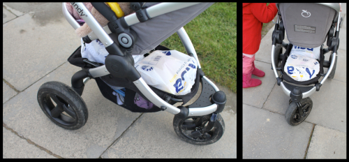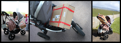 I had some returns for the post office today. Unfortunately one of them was a box and as the basket of the jogger is fairly narrow it would not fit underneath, and in the end I was forced to balance it on top. This is the first time I have needed to transport something of this size since having the jogger and it made me miss my Mothercare Xtremme a little.