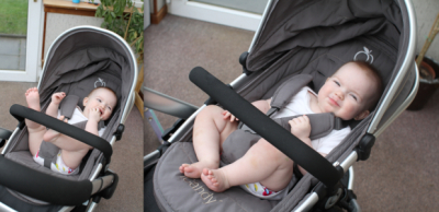 Size/Fit - I decided at the weekend that it would be a nice idea to take a photo once a month to document how much room for growth is left in the jogger. Photos taken on the 9th of April - Faye aged 9 Months old.