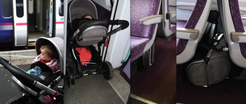 On a Scotrail train the iCandy is too wide to be pushed through the corridor past the toilets, however it tucks nicely in between 2 seats so you do not need to hope for space on the luggage rack for it. My Maclaren always poked out that little bit too far and the refreshment trolley couldn't get past so although it may not seem like a travel pushchair the two piece fold comes in really useful in situations like this.
