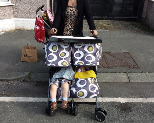 This week daddy had to pop into town with Kai 22 months and Teigan 3, so he decided to put them in the double to go quicker and it was surprising how easily Teigan fit, he did say it was heavy to push compared to normal but that isn't surprising with 2 toddlers in rather than a baby and a toddler.