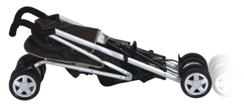 Very lightweight, the pushchair is easy to manoeuver with a heavier child in, and tipping back for kerbs is easy to do and feels good. The solid rubber wheels do, in themselves, feel good, although as you push along (especially with a lighter load), you get some rattle and shake from the front swivel wheels. If you need to, you can lock the front wheels into a fixed position to give you a bit more of a smooth ride over rougher ground. There is suspension for all four wheels, but as with most strollers, it is limited. I’d stick to the smooth urban terrain.