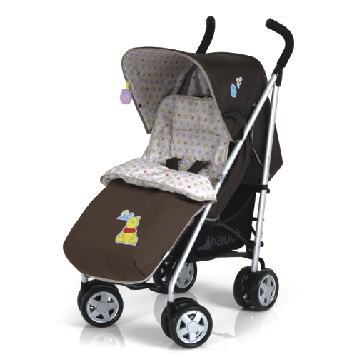 The Babies ‘R’ Us Hauck Hi-Way has a good sized forward facing stroller seat with plenty of room under the hood to last your little one well into toddlerhood. The seat can be used from birth when fully reclined. The look and feel of the soft wipe clean fabrics is good, with a simple and sophisticated use of Winnie The Pooh themed fabrics and motifs. Suitable for boys and girls the brown outer fabric has coordinating piping and a gentle yellow interior pattern.