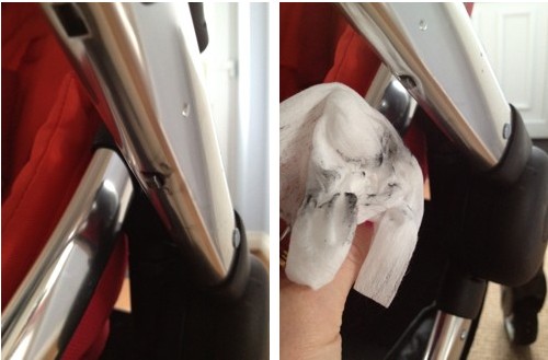 Lately every time I collapse the iCandy I end up getting black grease marks on my hands from the underside where the pins slot into the holes for the handle bar adjustment. Have wiped it down several times but rather annoyingly the marks have come back - done an internet search and it does seem to be a bit of an issue for other people too.