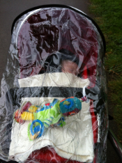 My little boy is looking pretty grumpy - hardly surprising as his view for most of this week has been from behind the plastic rain cover !!!
