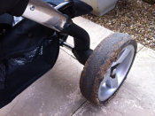 Once my little boy was settled and ready (I did initially attach the bumper bar, but decided against using it this time – it's just a simple click to fasten/ remove) we were off. There is very little pushing needed as this does more or less push itself as it is so lightweight. The handle is extendable, not necessary for me but useful for taller people! My only tiny concern is that we picked up a few small stones from the pavement and these left small dents in the back wheels, hopefully nothing to worry about but I will keep a close eye on this.