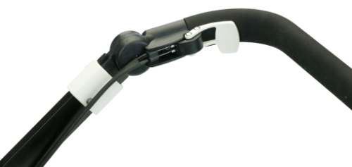 The feeling of quality continues in the rotating height adjustable handlebar; covered with a lovely warm leather effect material the bar handle is the full width of the pushchair, making it easy to steer and giving a comfortable amount of space to position your hands, although it is here that you first notice the pushchairs width.