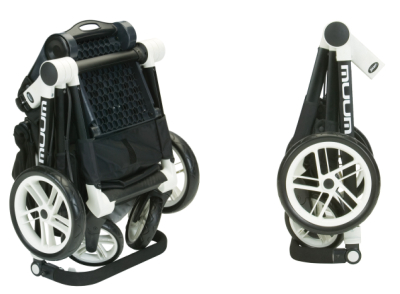The Muum can stand upright on its handle, which although isn’t ideal if you’re out and about is great for storage at home or in say a restaurant. However, I get the feeling the handlebar cover may have a difficult life, the pushchair really only collapses fully if the front swivel wheels are angled inwards – if this is not the case the handle bar rests upon them, not great after a walk in the mud. Luckily the leather effect material will be far easier to keep clean than foam.