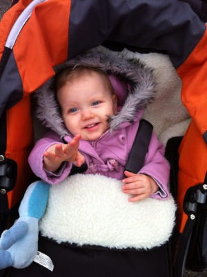 The footmuff on the BOB is one of the best I have ever used. It's very thick, lined with fluffy sheepskin material and has a water proof outer. It stays in place in the pushchair too, I've had no issues with it sliding down. My favourite thing though, is that it zips down on both sides, so there's no fighting to get Elise's legs out And I think it definitely helps with keeping it firmly in place. Elise was a bit obsessed with the lining when we first used it. She kept picking at it and putting the fluff in her mouth - I thought it was going to be bald by the end of winter! But she seems to have got over that obsession now, thank goodness!