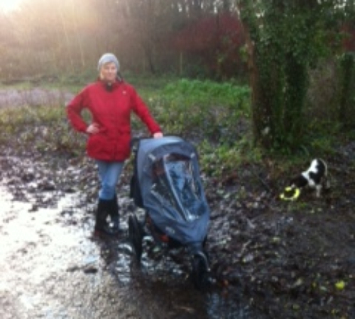 Another muddy walk, before the 2nd round of storms hit! Walking through the mud is no problem for this pushchair!