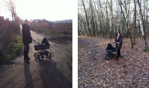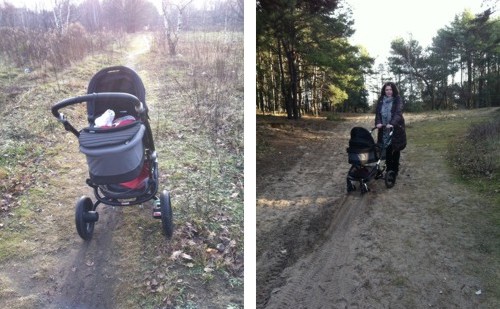 I usually go to the parks with lovely smooth footpaths or to the shopping centres and obviously almost every pushchair is ok on these kind of surface. Britax is great, as it is completely soundless. I can't hear the wheels, any clicks or squeaks. I was really curious if I will be equally impressed using Affinity on bumps, sands, leaves and among trees. I have to say suspension made a difference in the woods. I set it on "soft" and the pushchair was going smoothly and effortlessly on hardened village roads and gravel, it was also pleasant on the bumpy woodland paths.