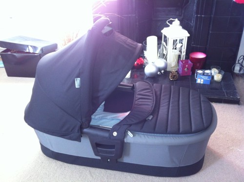 The black carrycot and red footmuff arrived just before Christmas. The carrycot looks tiny when you first open the box, so I was a bit worried if my baby will still fit in it. At first I didn't like the all black interior, but it works magic for my son, he finally falls asleep easily in the pram, so I would recommend it to all the light sleepers.