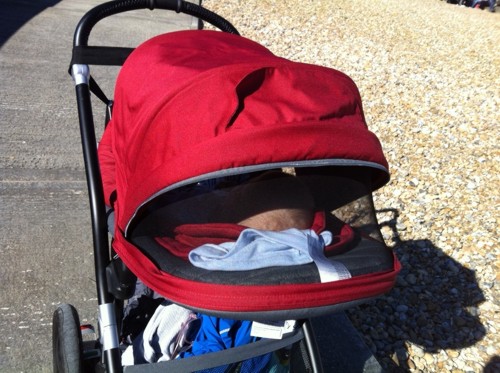 sun was lower, the hood seemed to be a bit too short to cover the baby