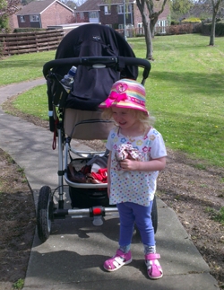 A lovely sunny day here, and I’m finding the sleep pod very useful. Daddy is at work so today is a picnic by the river and a play date in the park. It really is much more useful than a parasol as I know that Charlie is fully protected & I’m sure he sleeps for longer as it is darker. When we get home I park the pushchair in the conservatory and leave him asleep. It really is useful, especially as he is so young. Although I still put sun cream on him when we are out and about, I don’t have to worry too much about re-applying it all the time. I tried to take a nice picture but Lucy refused to pose today!
