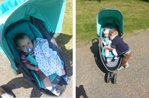 On one of my days off this week we went for a walk down by the canal to enjoy the weather whilst is was nice! Always a pleasant walk with the Evo Mini, nice and lightweight for maneuvering round the cobbles and gravel paths. We have also been taking the pram out on our school runs most mornings when the huge basket really comes in handy for carrying bags and coats etc!