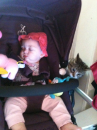 Poppy the Cat checks out the Cherry while Olivia has a snooze.