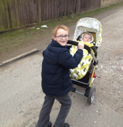 Today's adventure takes us on the school run, dry but cold weather and great for a walk out without overdoing it. We selected the carrycot to take us on this journey, with the hood up it provides great protection from the chill factor and keeps Oscar completely protected from the elements. Surprised at how easy the carrycot is to click into place, although initially worried that it wasn't secure once moving I soon realised this was an overprotective mummy perception and not a fault of the Giggle. The mattress in the giggle appears more than comfy with Oscar managing the ups and downs of the pavements and kerbs without much fuss. I've heard that with three wheelers they can be unsteady when going up and down the kerbs but the giggle handles this nicely with no concerns about tipping or balancing incorrectly. A successful first school run accompanied by the Giggle and Oscar.