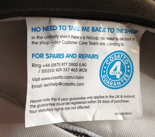 Did you know that with every Giggle you get a 4 year guarantee? In my opinion this is great as at the age of 4 I would hope Oscar no longer requires the pushchair! A pushchair that is meant to last the entirety of tiny bubbas pushchair years and should there be any problems you get a UK contact number with a real person to speak too - thumbs up from this end.