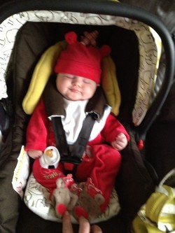 dress me as a reindeer!! I like the car seat, I've outgrown the head