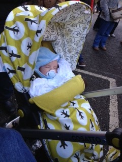 Today we met Santa or many Santas whilst completing the Santa jog in aid of the British heart foundation. For us it was more of a stroll particularly as the Giggle isn't designed to be a pushchair to be jogged or exercised (beyond walking with) and you can tell, beautiful to push for a stroll and getting around but pick up the pace on uneven ground and it becomes an uncomfortable journey for baby and push for parent.