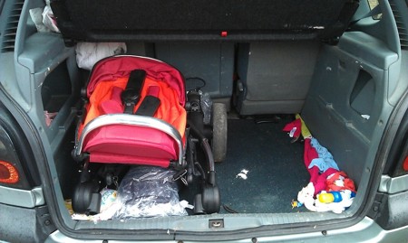 I don't have any problems getting mine in or out of the boot of my renault megane scenic, I never put it in the same way which means I can usually get a fair bit more in my boot too which is good.