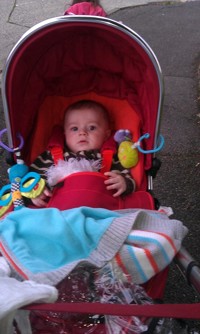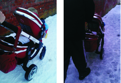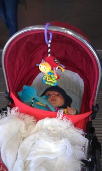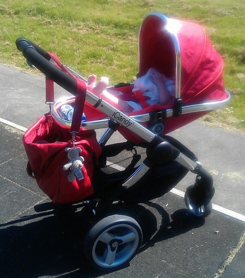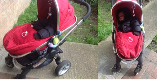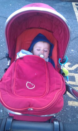 March the 17th 2012My first outing with Charlie in the Peach, was really really smooth, it just glides when your walking. He has so much room in the carrycot! however I had trouble trying to get the carrycot in the boot of the car as its really quite deep so it doesn't fit on top of the chassis and the basket is much smaller with the carrycot on its hard to get much in it.