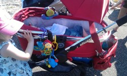I took my pram to the beach yesterday and I have to say the hood is big enough to cover the best part of the carrycot so most of the sun was kept of off Charlie. On the downside to the hood, it clicks quite subtly when pulling up or putting it down, which disturbs my peacefully sleeping LO at times, but again a lovely glide along the beach was such a pleasure to push!
