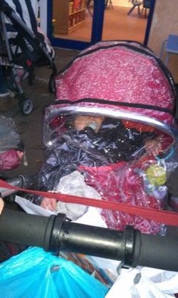This week it has been non stop rain and I think the raincover is getting harder to put on the more times I do it, its such a snug fit!!..