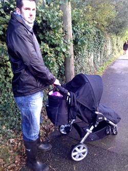 control the pushchair, fully loaded with his change bag, bottle bag and
