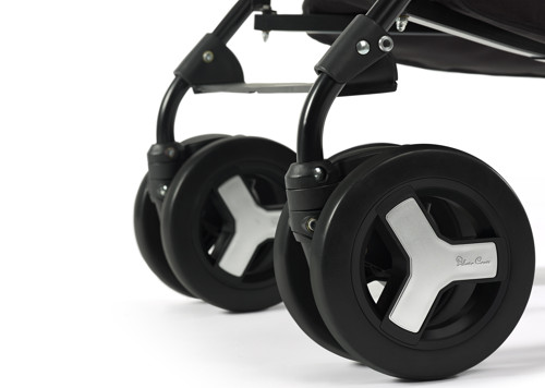 Silver Cross have developed some nice wheels for the Reflex. Measuring 16cm, they have a big chunky look and feel, and don’t have any traditional ‘stroller wheel rattle’. The front wheels are lockable too (there are eight of them though - so if you head off the beaten track, you’ll have to spend a bit more time on cleaning!)