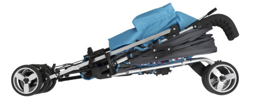 Folding the Acti-Cruise could not be simpler and takes surprisingly little effort. Make sure the hood is back, the seat upright and pull the brace between the handle bars up to unlatch it. Reach down behind the seat and grab the handle that sits above the folding mechanism, lift, twist clockwise and pull. The Acti-Cruise breaks in the middle as the handle bars pull together. Fold the top of the stroller forward and push down to lock it closed. Easy!